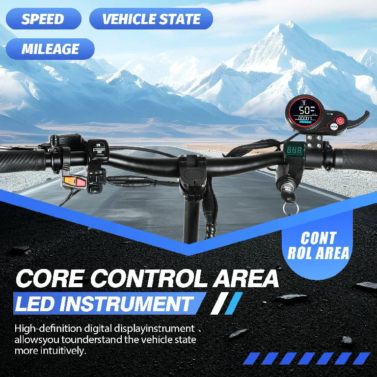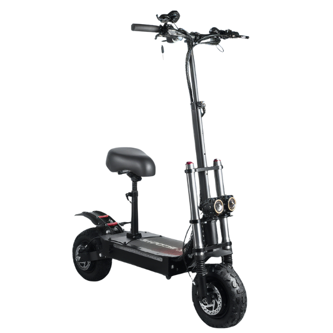 The T11PLUS is built for power, comfort, and style, making it the ultimate electric scooter for both urban commutes and off-road adventures. Featuring a dual motor system with 3000W*2 motors, this scooter delivers exceptional performance, enabling you to reach speeds of up to 50 mph and a long range of 55 miles on a single charge. Its 11" off-road vacuum tires and double disc brakes ensure a smooth and safe ride, whether you’re on city streets or exploring rugged terrain.