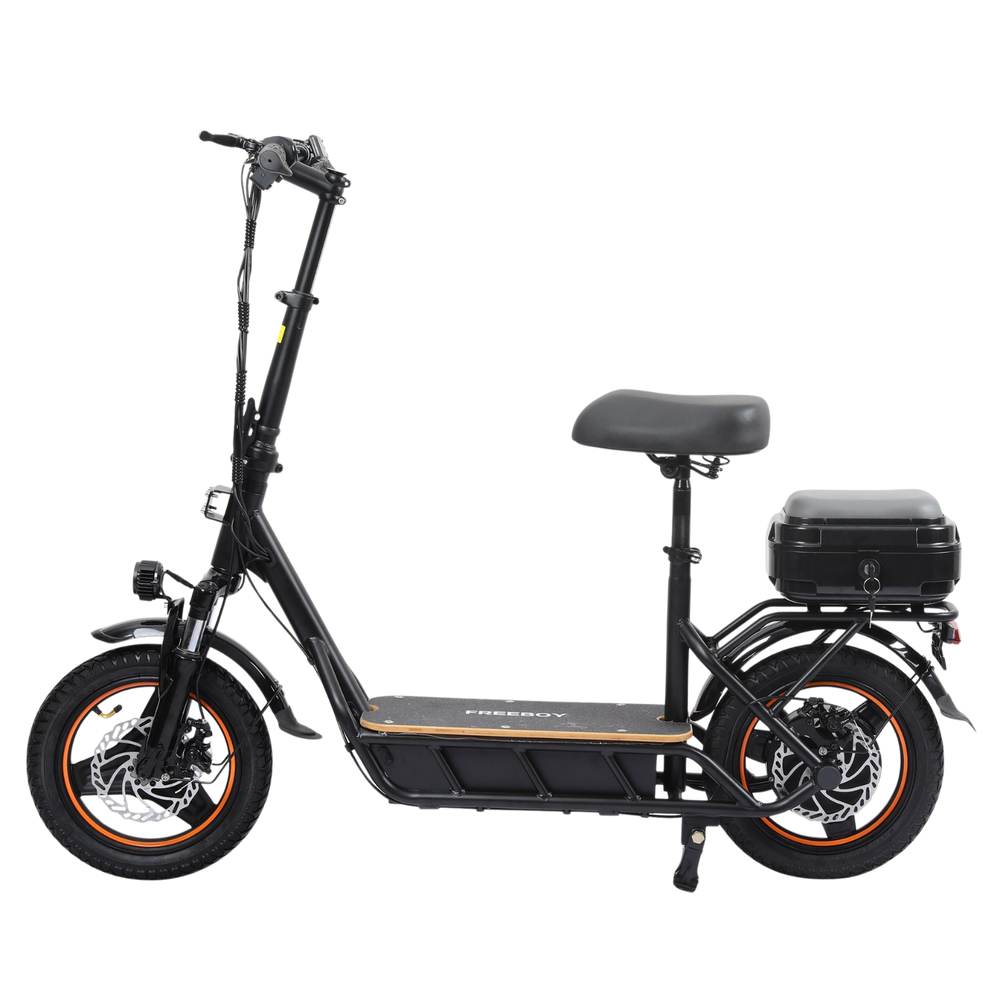 The TB14 Electric Scooter merges powerful performance with everyday practicality. Its 750W motor achieves speeds of 28mph, while the 48V 18Ah battery guarantees a dependable range for your daily travels. The 14-inch air tires effectively cushion against road bumps, providing a comfortable ride, and the built-in side-mounted storage case safely accommodates groceries, or other essentials. Constructed with a sturdy aluminum-steel frame that supports up to 330lbs, this scooter is your reliable choice for hassle-free commuting, running errands, and exploring the city—complete with a 1-year warranty.